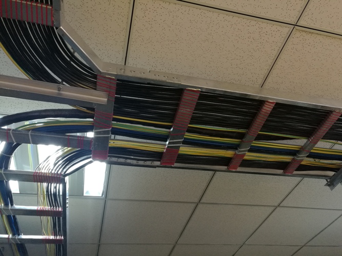 三是機房橋架式上布線具有安全的可靠性。根據(jù)相關機房建設標準,機房橋架式上走線方式更加提高了設備線纜之間的隔離,更加明確了強、弱電分離避免了各個信號干擾,增加了系統(tǒng)的可靠性,而且在此項目中我們采用不同顏色扎帶對線纜進行捆扎,以區(qū)分各線纜功能用途。