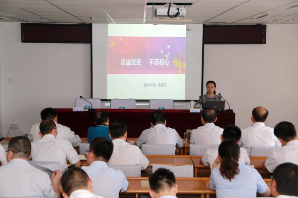 講座邀請了衡水學院馬克思主義學院吳春然副教授作專題輔導。吳春然以“重溫黨史、不忘初心”為題,以黨的歷史上的重要會議為主線,從“開天辟地大事件—中國共產黨成立”“中國共產黨在革命斗爭中不斷成長壯大”“新中國成立以來中國共產黨在自我革新中發展”3個方面作了詳細解讀。